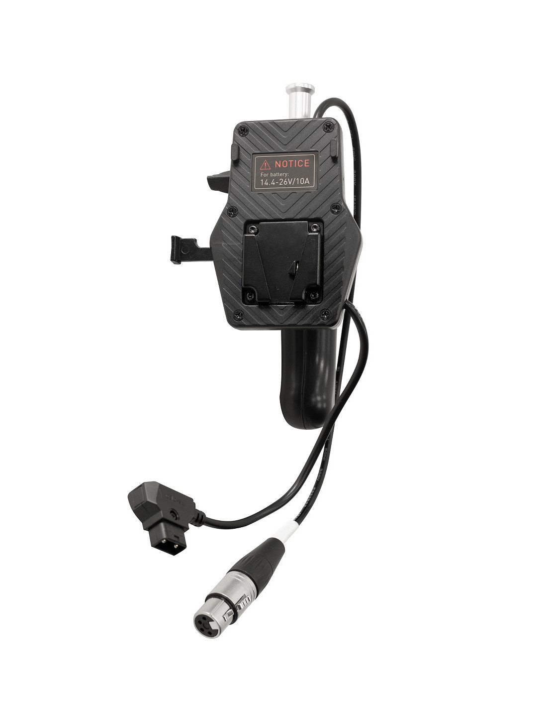 Esclusivo battery grip con montaggio a V per Forza 150, il design ergonomico offre una presa comoda, il connettore XLR standard a 4 pin integrato facilita il collegamento all'apparecchio. Non solo una soluzione di illuminazione mobile può essere realizzata senza sforzo, ma anche una soluzione di supporto leggero con il suo pin da 5/8". L'impugnatura è compatibile con batterie V-mount 14,8V/26V con connettore D-Tap.