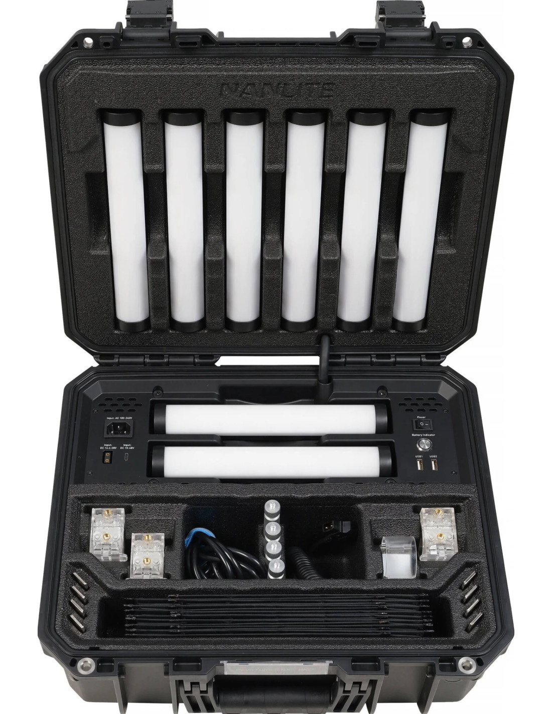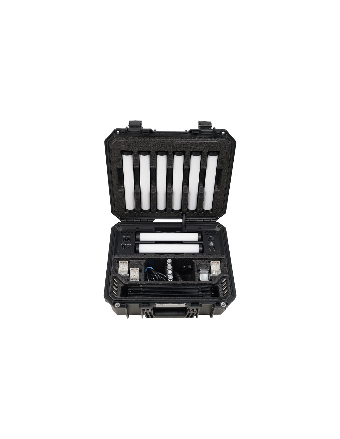 NANLITE ha presentato un kit di 8 luci esclusivamente per il PavoTube II 6XR, progettato per le esigenze della produzione professionale. Include otto proiettori, modificatori, accessori di montaggio e una custodia di ricarica personalizzata (basata sul modello Gutek T-230). Grazie al grado di protezione IP67, alla resistenza agli urti, al design antiurto e al ritardo di fiamma V-2, la custodia offre una protezione affidabile durante il trasporto. Sia gli apparecchi che gli accessori sono dotati di slot dedicati, per garantire un'archiviazione organizzata. La custodia supporta la ricarica simultanea di tutti gli otto apparecchi e offre tre opzioni di alimentazione: Alimentazione CA, batteria con attacco a V e adattatore PD. Questa soluzione portatile semplifica l'installazione di più apparecchi, offrendo una conservazione, una ricarica e una protezione efficienti sul set.