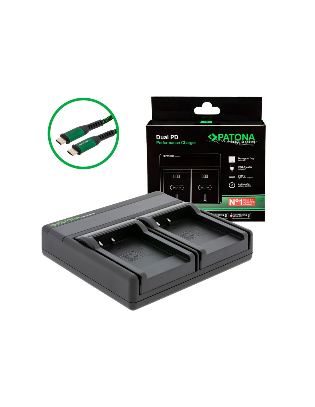 Il caricabatterie PATONA Premium Dual PD consente la ricarica rapida e simultanea di due batterie, indipendentemente dalla loro capacità. La tecnologia di ricarica intelligente riconosce automaticamente la tensione delle batterie inserite e previene efficacemente il sovraccarico o il surriscaldamento.