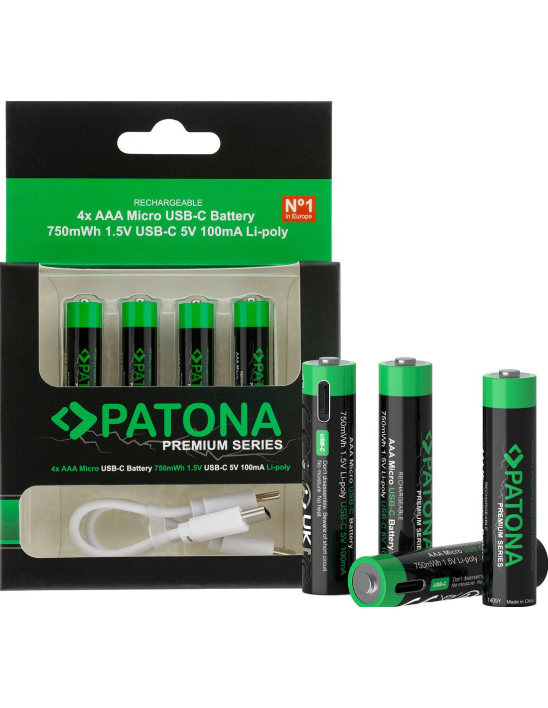 Le batterie ricaricabili PATONA Premium AAA-Micro USB-C offrono una longevità eccezionale e possono essere ricaricate oltre 1.000 volte, oltre a essere caratterizzate da un'autoscarica estremamente ridotta.