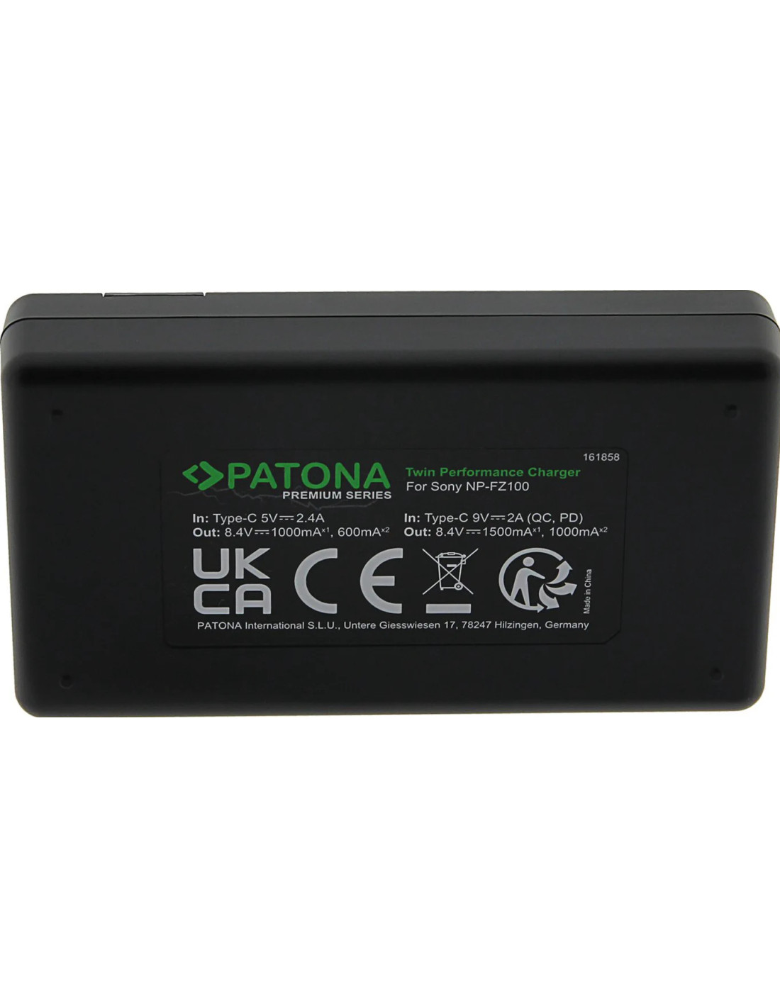 PATONA PREMIUM TWIN PERFORMANCE PD CHARGER FOR SONY NP-FZ100 A7 III A7M3 ALPHA 7 III A7 R III A7RM3 ALPHA 7 R III A9 INCL. USB-C