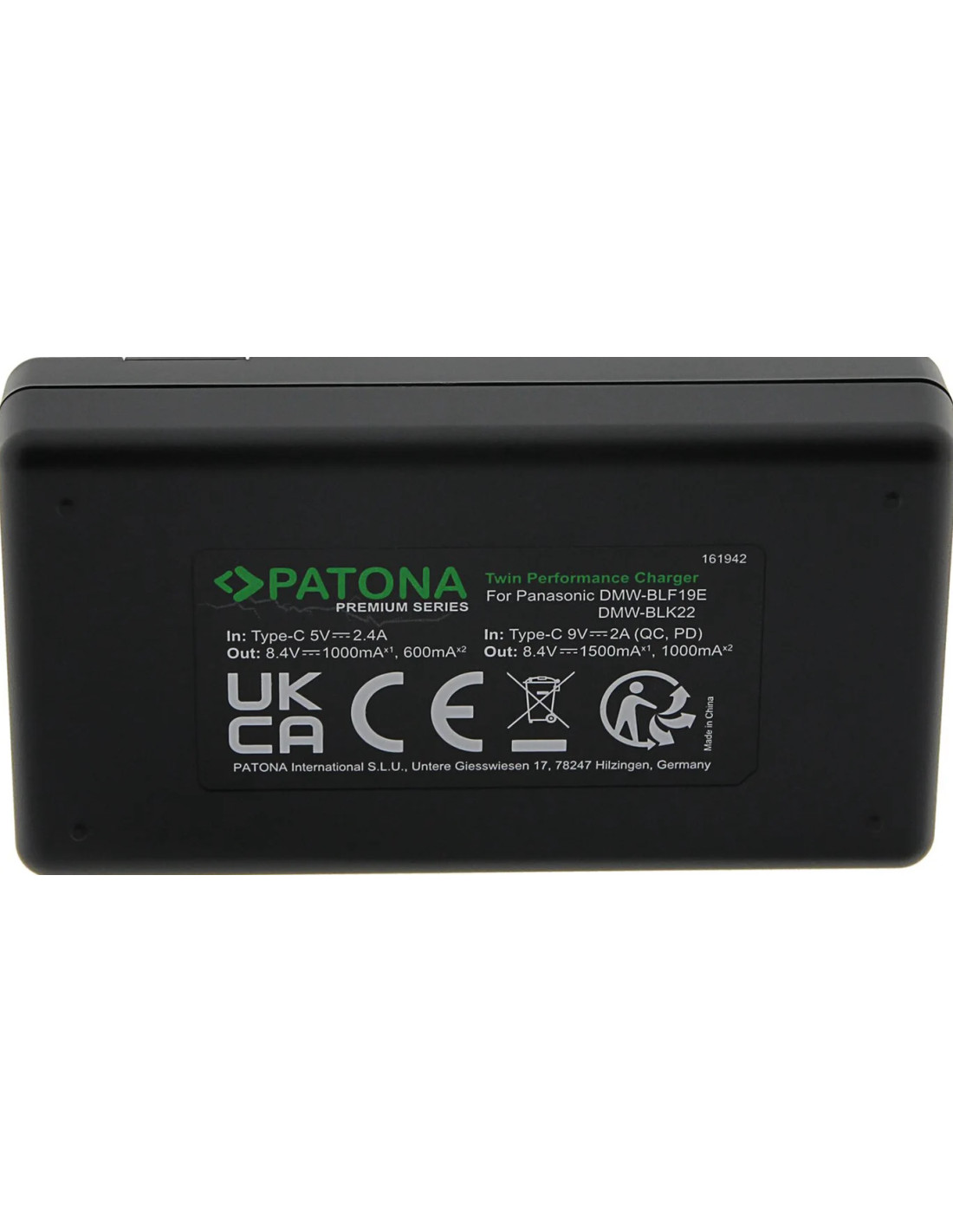 PATONA PREMIUM TWIN PERFORMANCE PD CHARGER FOR PANASONIC LUMIX DMC-GH3 GH3A GH4 DMW-BLF19 INCL. USB-C CABLE