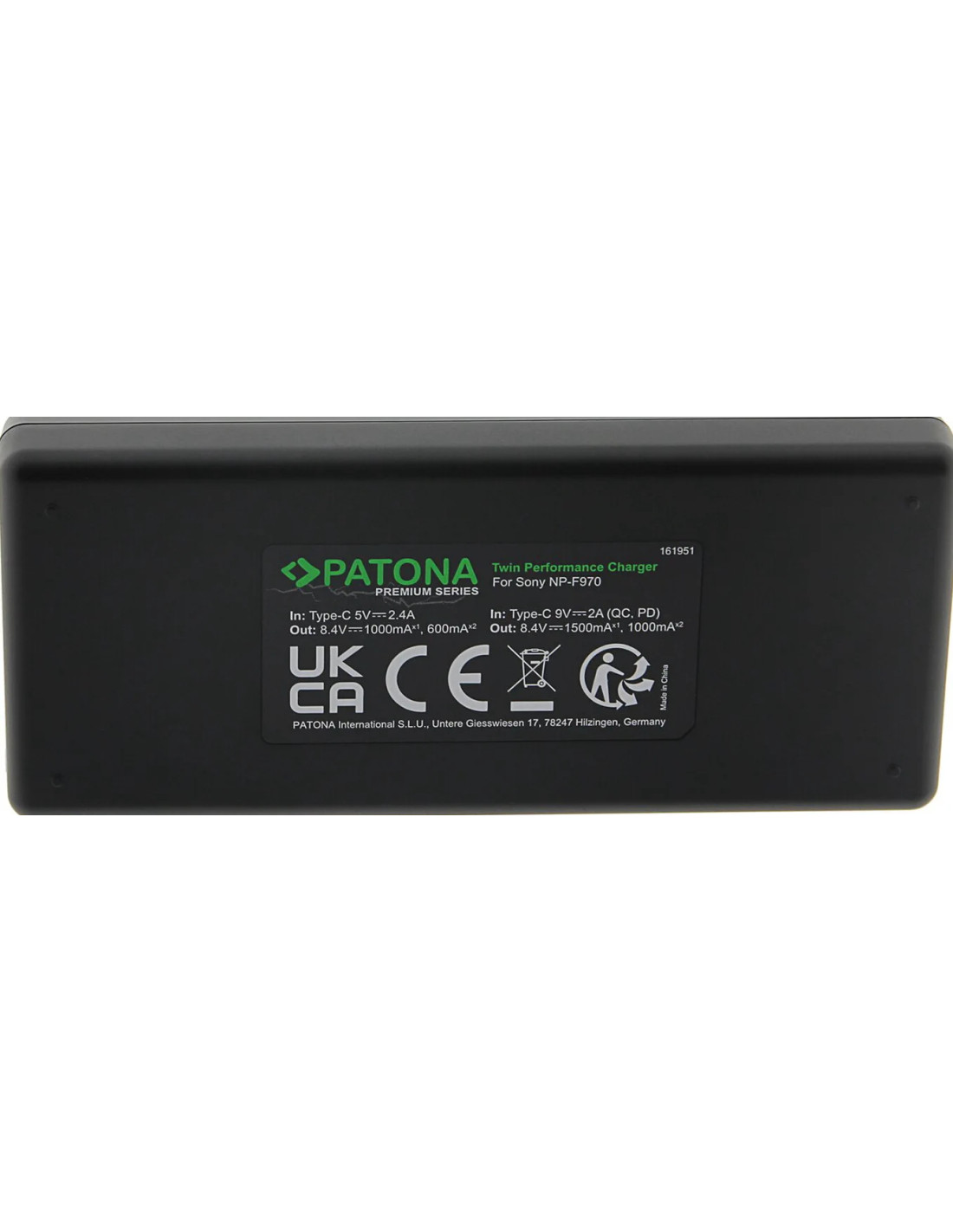 PATONA PREMIUM TWIN PERFORMANCE PD CHARGER FOR SONY F550 F750 F970 FM50 FM500H INCL. USB-C CABLE