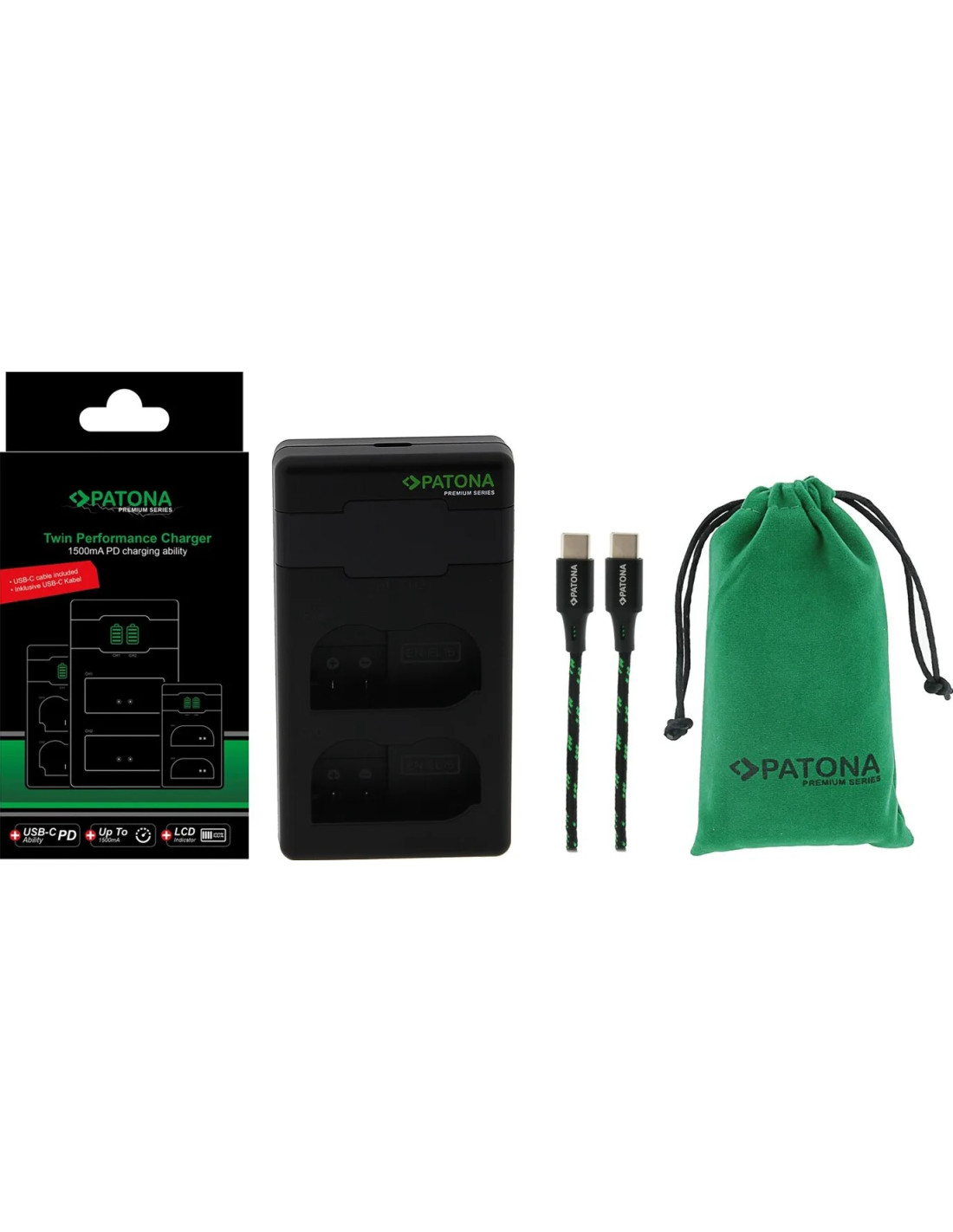 PATONA PREMIUM TWIN PERFORMANCE PD CHARGER FOR NIKON EN-EL15 D600 D750 D800 D810 D810A D7000 D7100 D7200 D750 INCL. USB-C CABLE