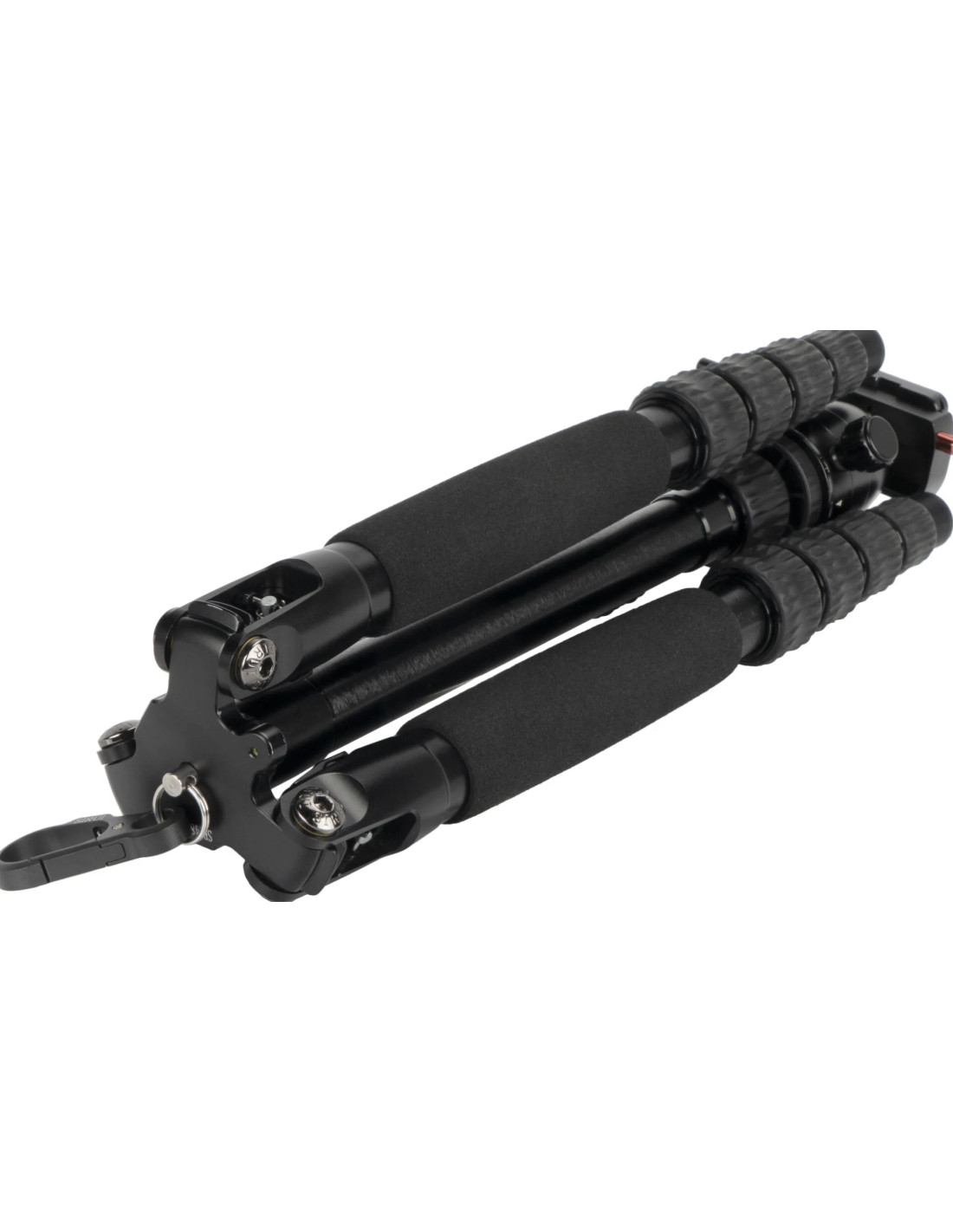Le gambe possono essere ruotate verso l'alto di 180 °, in modo che il treppiede sia alto solo 33 cm quando piegato (con la testa).