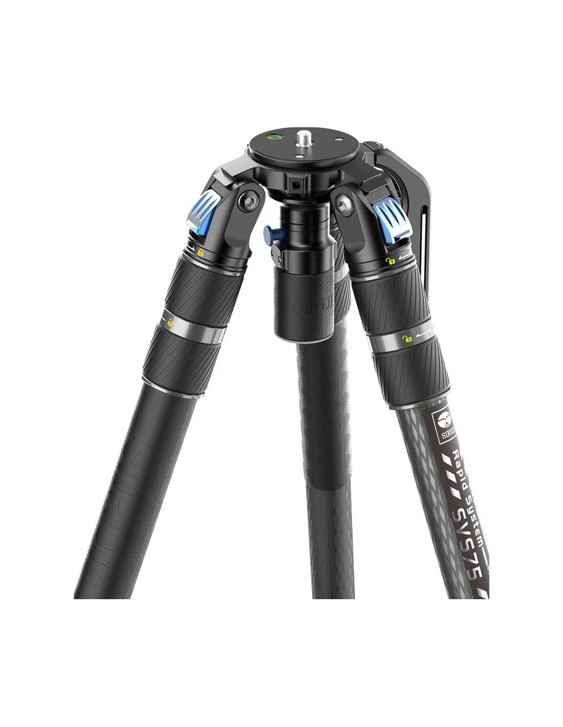 - Costruzione in fibra di carbonio superiore: Realizzato in fibra di carbonio di prima qualità, il treppiede SVS75 è eccezionalmente leggero ma robusto, in grado di sostenere un carico massimo di 25 kg. Il diametro delle gambe di 36 mm garantisce una maggiore stabilità, ideale per sostenere i rig cinematografici più pesanti.