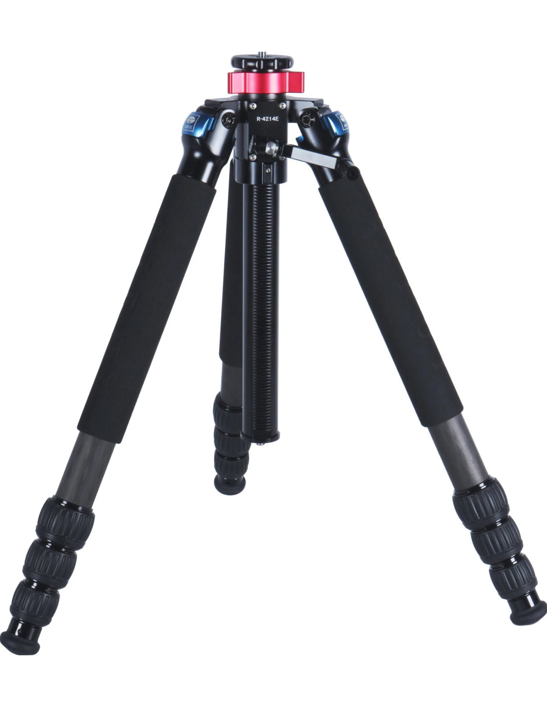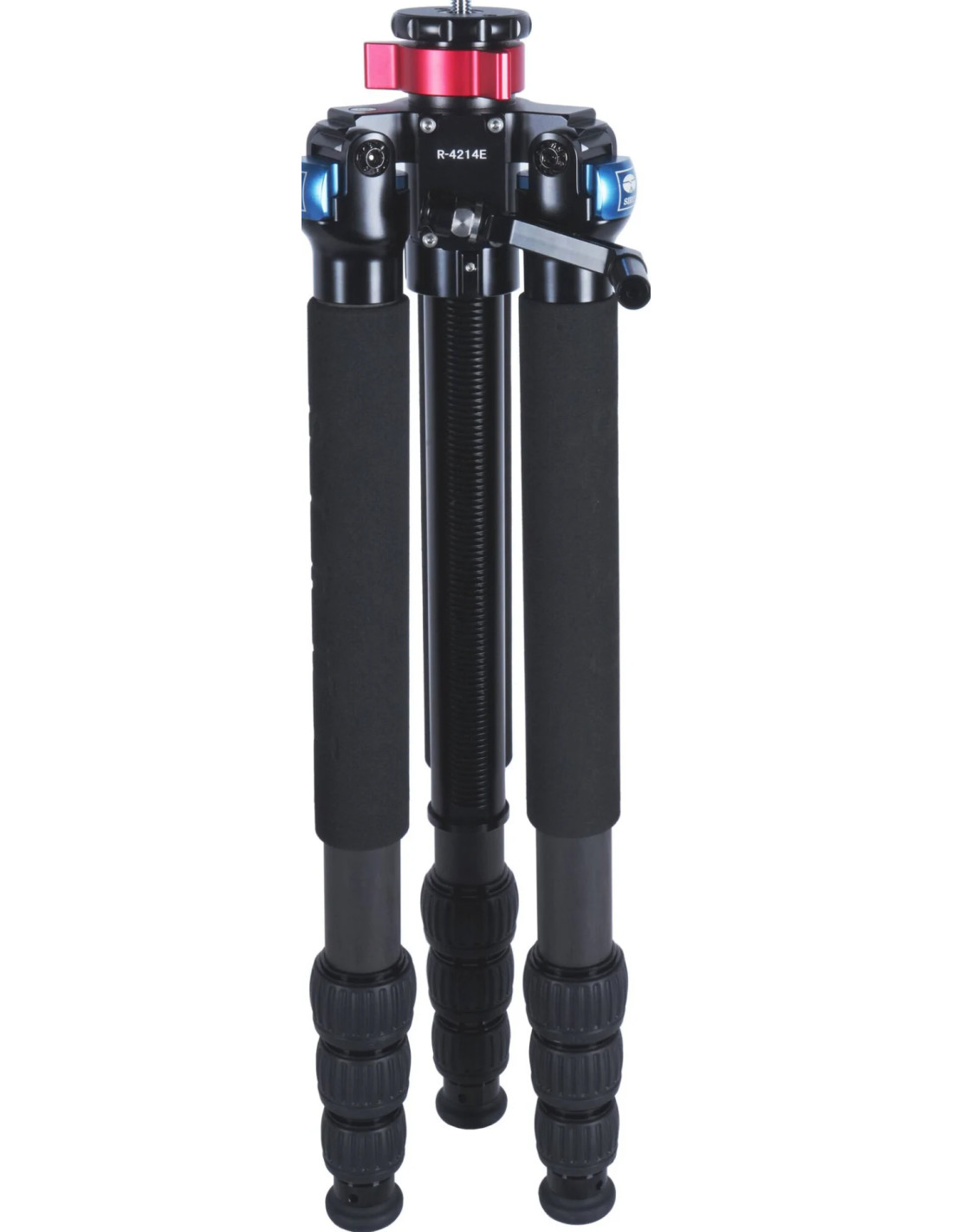 Le gambe in fibra di carbonio hanno una diffusione indipendente e tre posizioni di bloccaggio per una varietà di altezze e per aiutare a raggiungere il livello su terreni irregolari. Ogni gamba ha una copertura imbottita per una migliore presa. Le gambe del treppiede hanno una scala graduata con incrementi di 5 cm per scenari che richiedono regolazioni precise dell'altezza. I piedini in gomma sono rimovibili e sono inclusi un set di 3 piedini a punta, in modo che l'R-4214E possa avere trazione su qualsiasi tipo di superficie.