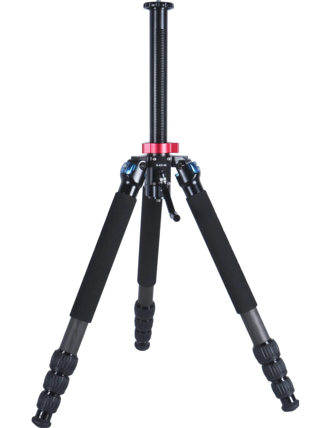 Il treppiede in fibra di carbonio a colonna centrale con ingranaggi R-4214E di Sirui è un robusto treppiede in fibra di carbonio con un'altezza massima di 178.5 cm e una capacità di carico di 14kg, che lo rende adatto per l'uso con configurazioni di fotocamere pesanti, telescopi, dispositivi di misurazione di precisione, e molto altro ancora. La colonna centrale è azionata da ingranaggi per un posizionamento preciso e dispone di un collare di bloccaggio. la colonna centrale presenta anche una punta filettata da 3/8"-16 per il montaggio di una testa in posizione capovolta.