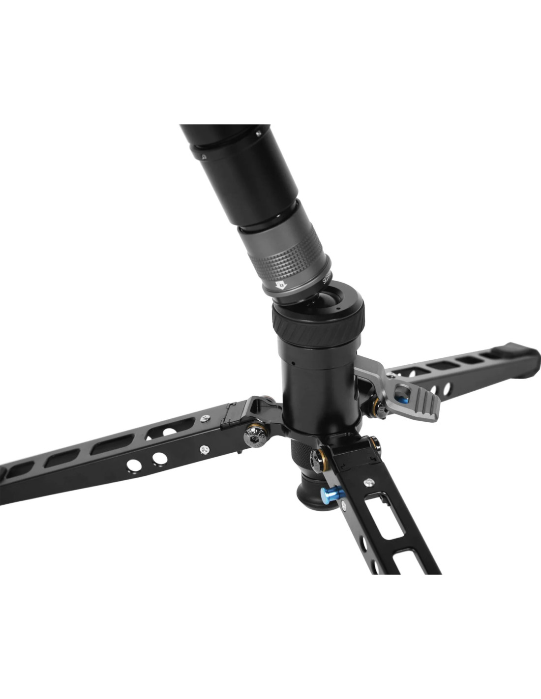 Le tre sezioni del kit (piastra di montaggio, gamba del monopiede e base del treppiede) possono essere staccate e combinate liberamente in un monopiede, un'asta di prolunga o un treppiede da tavolo. La piastra del treppiede utilizza una filettatura autoadattativa commutabile per l'installazione di accessori con fori filettati da 3/8-16“ o 1/4-20”. Infine, il modulo di sgancio rapido, che si fissa tra la colonna centrale e la piastra, consente una rapida installazione e smontaggio tirando una sola volta verso il basso per allentare e rilasciare qualsiasi adattatore collegato.