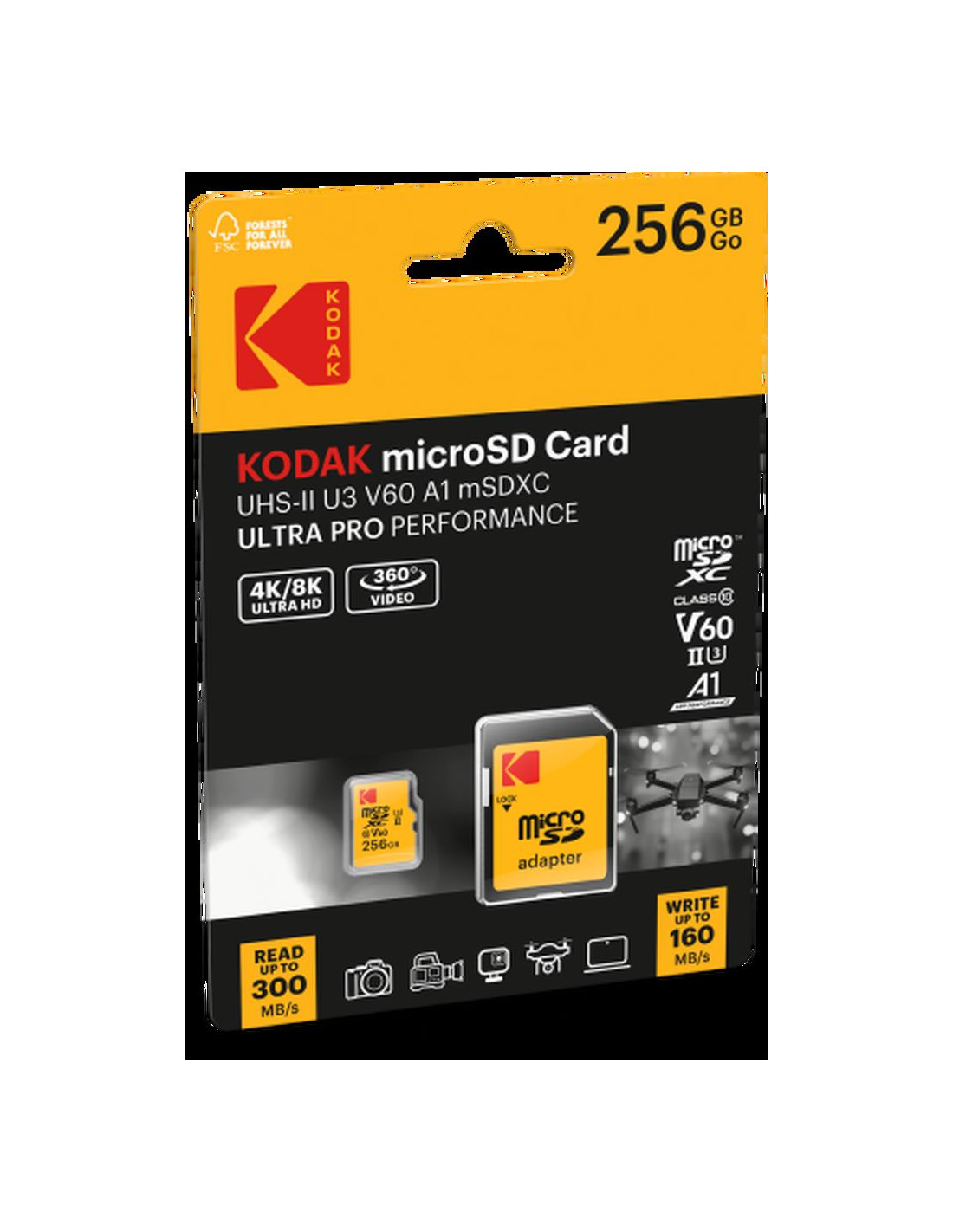 KODAK MICRO SD 256GB UHS-II U3 V60 PRO CON ADATTATORE