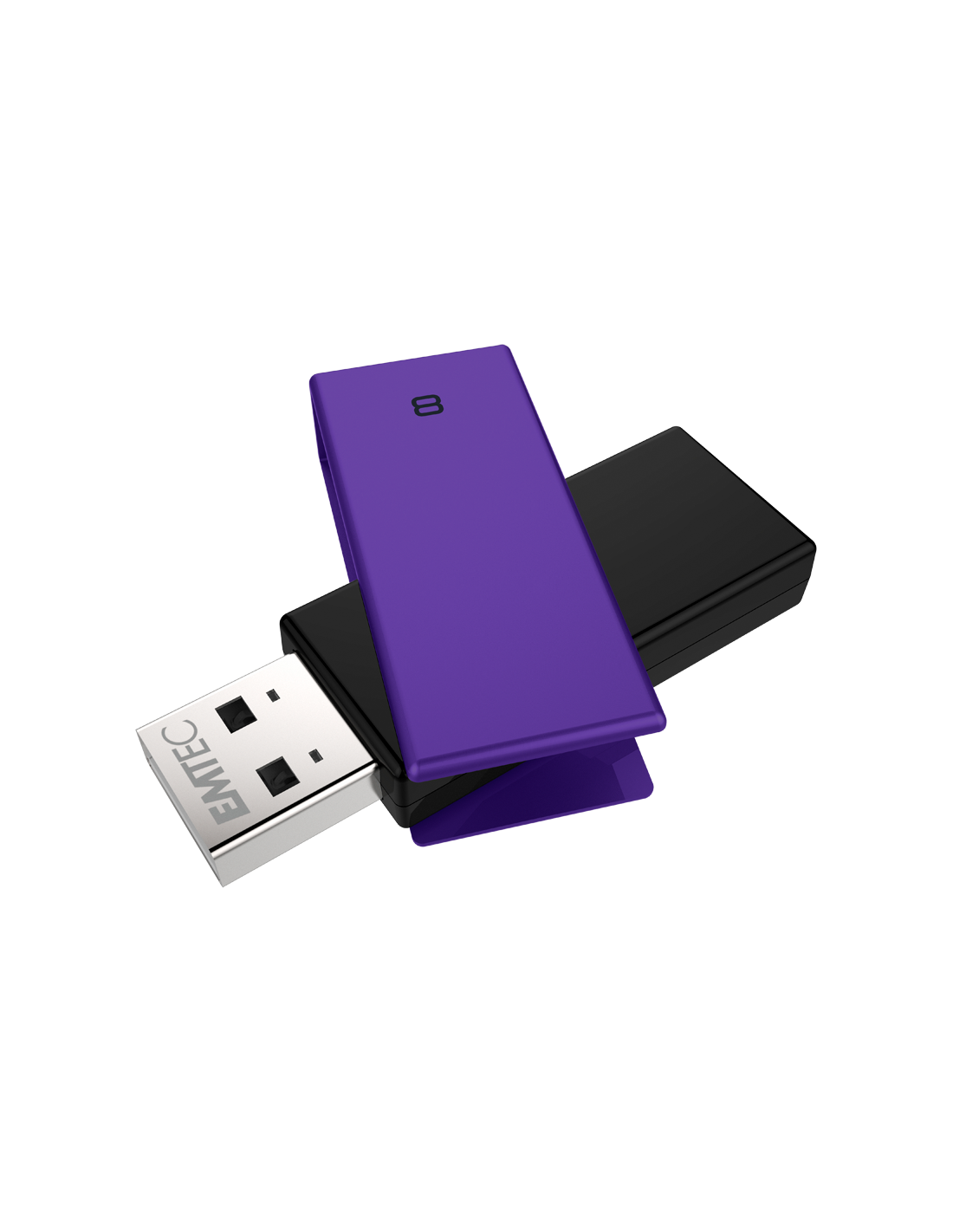 Emtec C350 Brick 2.0. Capacità: 8 GB, Interfaccia dispositivo: USB tipo A, Versione USB: 2.0, Velocità di lettura: 15 MB/s, Velocità di scrittura: 5 MB/s. Fattore di forma: Girevole, Colore del prodotto: Nero, Viola