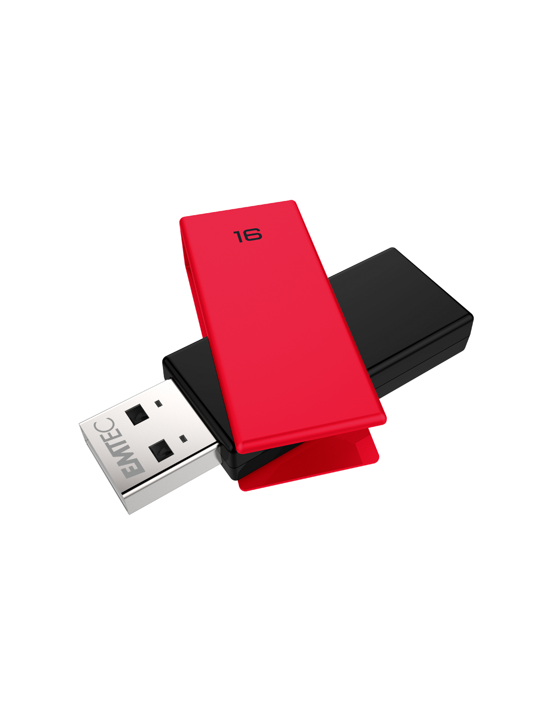 Emtec C350 Brick. Capacità: 16 GB, Interfaccia dispositivo: USB tipo A, Versione USB: 2.0, Velocità di lettura: 15 MB/s, Velocità di scrittura: 5 MB/s. Fattore di forma: Girevole, Colore del prodotto: Nero, Rosso