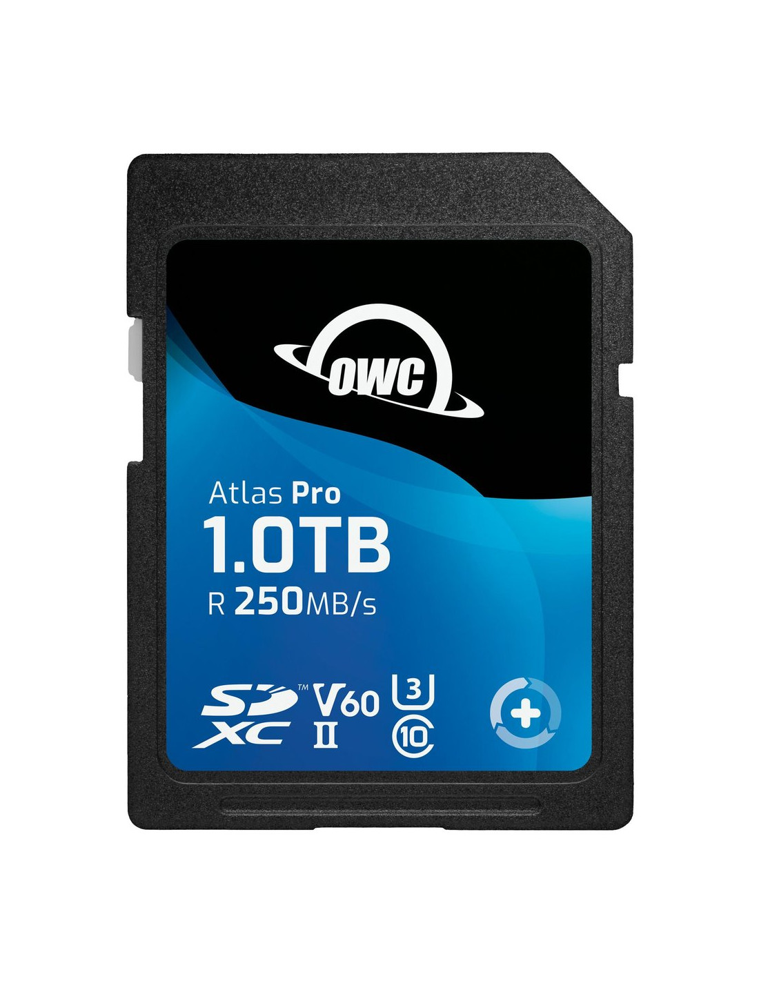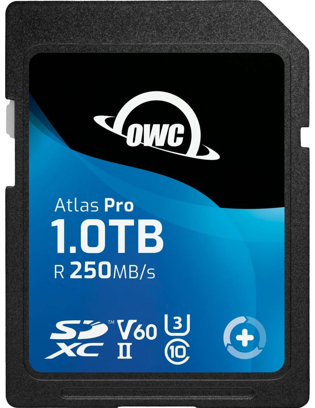 La scheda di memoria Atlas Pro UHS-II SDXC da 1TB di OWC / Other World Computing ha una capacità di archiviazione di 1TB e sfrutta il bus UHS-II per supportare funzioni avanzate di DSLR/mirrorless come raffiche di otturatori continui e scatti rapidi, nonché acquisizioni raw e JPEG. Questa scheda è adatta anche all'acquisizione di video, compresi quelli in 4K, Full HD e 3D. Può raggiungere velocità massime di lettura sequenziale fino a 250 MB/s e velocità massime di scrittura sequenziale fino a 130 MB/s. Grazie alla classe di velocità V60, le velocità minime di scrittura sostenuta sono garantite per non scendere al di sotto di 60 MB/s.