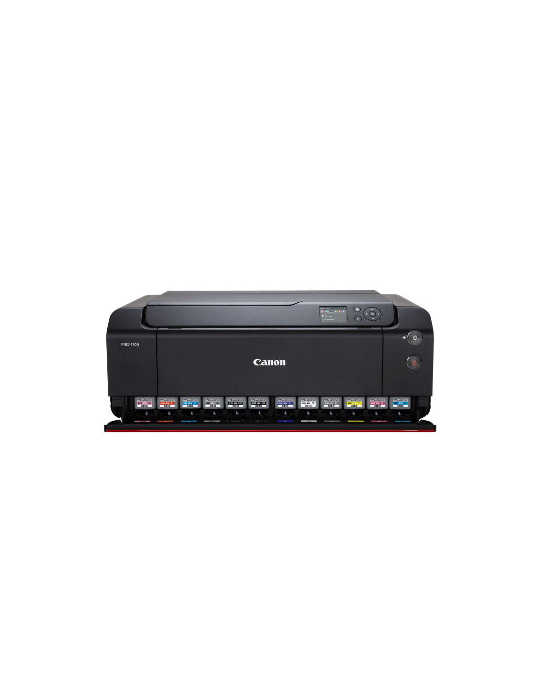 Contrassegnata dalla caratteristica linea rossa solitamente presente sugli obiettivi professionali, la stampante fotografica a getto d'inchiostro wireless professionale imagePROGRAF PRO-1100 da 17" di Canon produce stampe di grande formato con neri profondi, gradazioni dettagliate e un'ampia gamma cromatica che riproduce accuratamente anche i colori più difficili. Questa stampante utilizza la tecnologia FINE (Full-Photolithography Inkjet Nozzle Engineering) e il set di inchiostri a pigmenti LUCIA PRO II a 11 colori crea stampe con una maggiore uniformità di lucentezza e anti-bronzing. Il Chroma Optimizer migliora la lucentezza, appiattisce la superficie di stampa e amplia la gamma cromatica. La PRO-1100 produce stampe fino a 17" di larghezza, stampe senza bordi fino a 17 x 22", è compatibile con supporti fino a 0,7 mm di spessore e supporta una lunghezza massima della carta stampabile di 129".